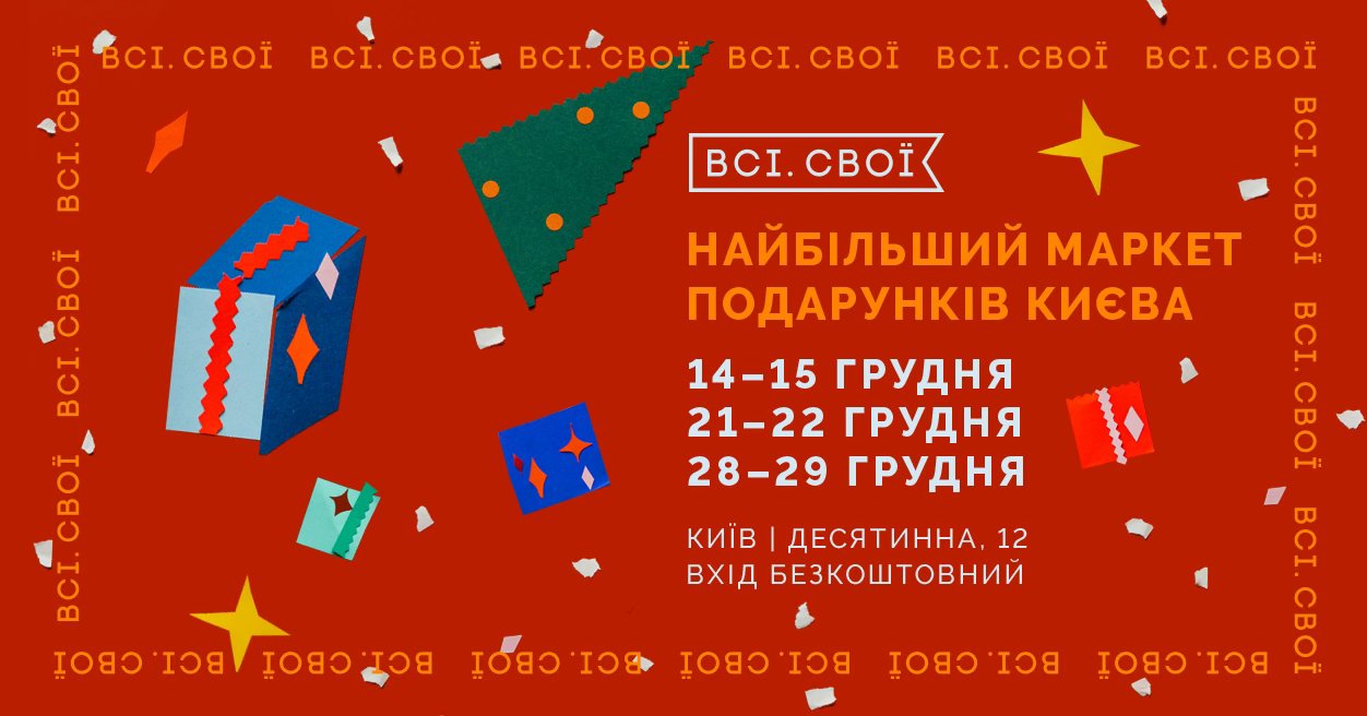 «Найбільший маркет подарунків Києва», протягом трьох вікендів 14–15 грудня, 21–22 грудня та 28–29 грудня об’єднає локальних виробників, благодійні ініціативи, спілкування та відпочинок на наших фудкортах.